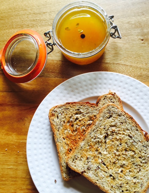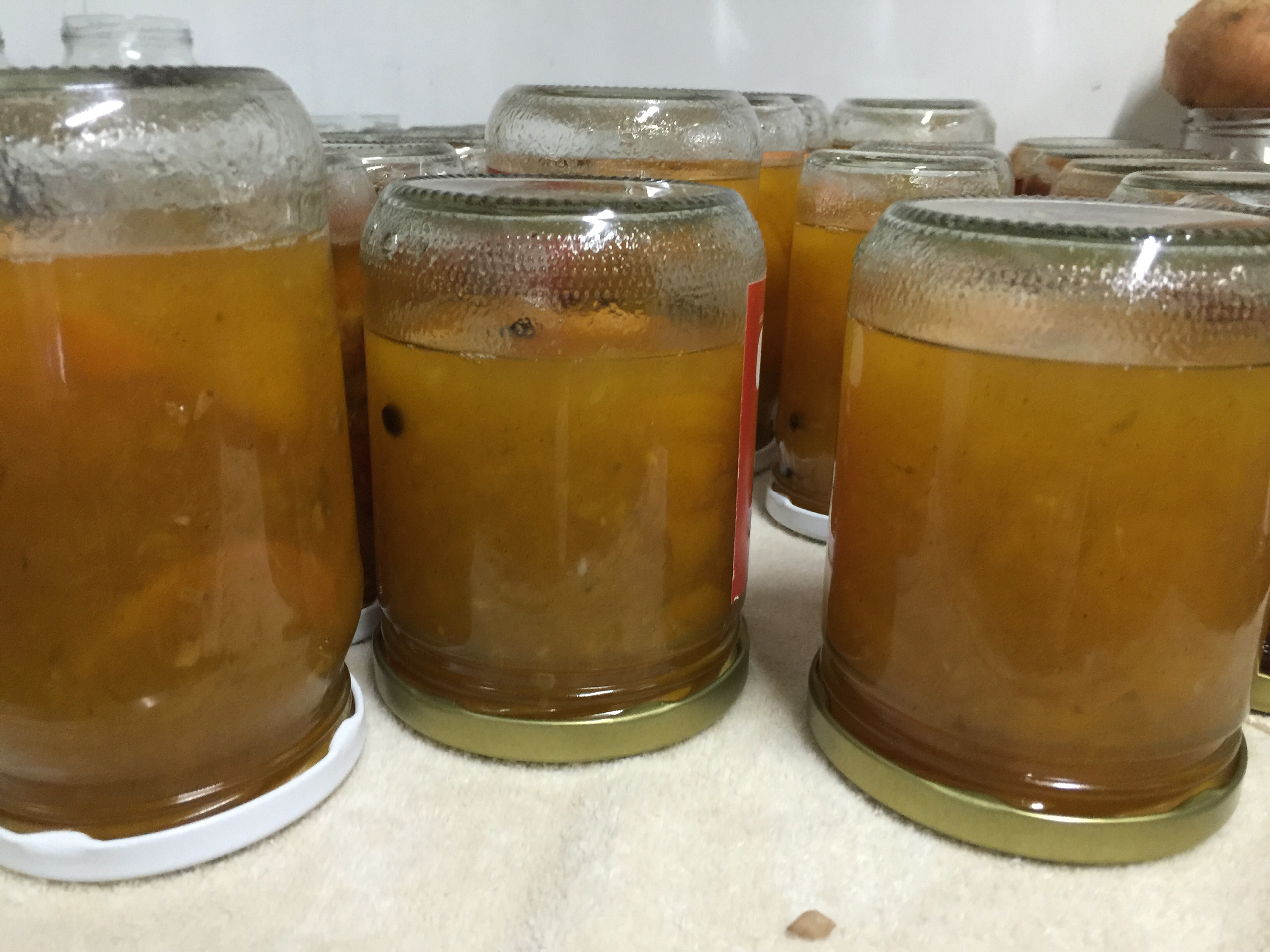 Envasar con la mermelada recién hecha y caliente y poner los tarros boca abajo sobre un paño y dejar enfriar.