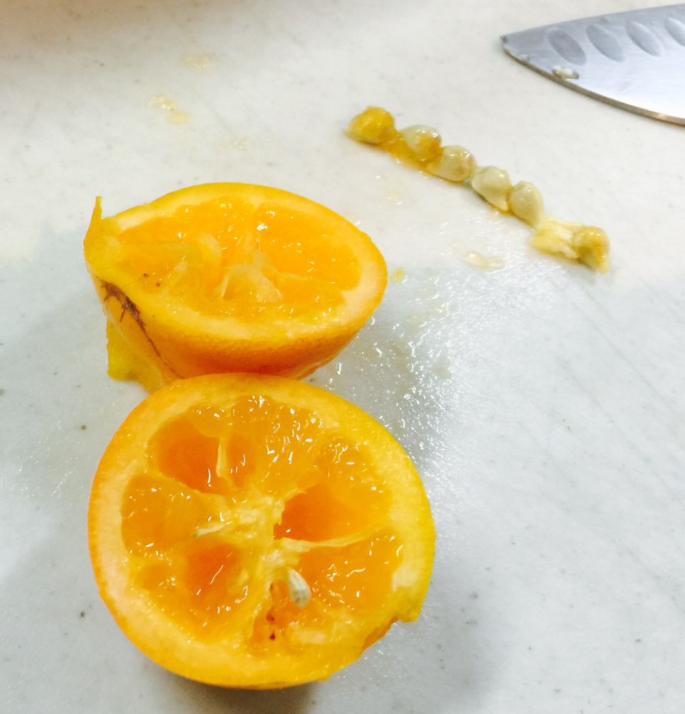 Iniciamos, lavando muy bien los calamondines, los cortamos a la mitad y sacamos las semillas con la punta del cuchillo, si se desea se pueden partir nuevamente en cuartos o como desees.