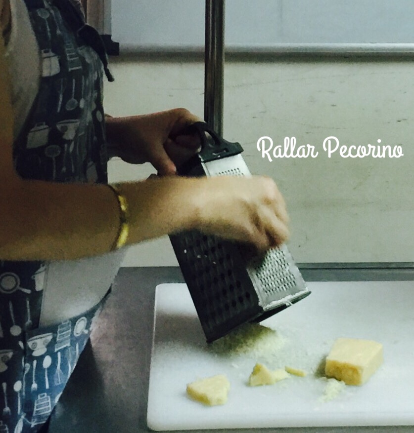 El último paso es agregar el Pecorino recién rallado y pimienta negra molida en el momento