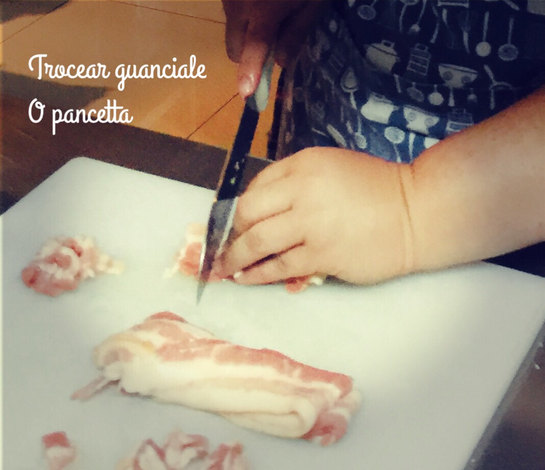 - 200 gr guanciale (cachete de cerdo) en su defecto Tocino de cerdo (no ahumado sería genial)