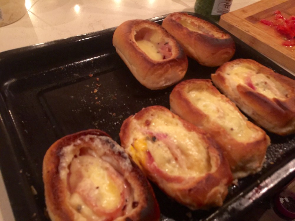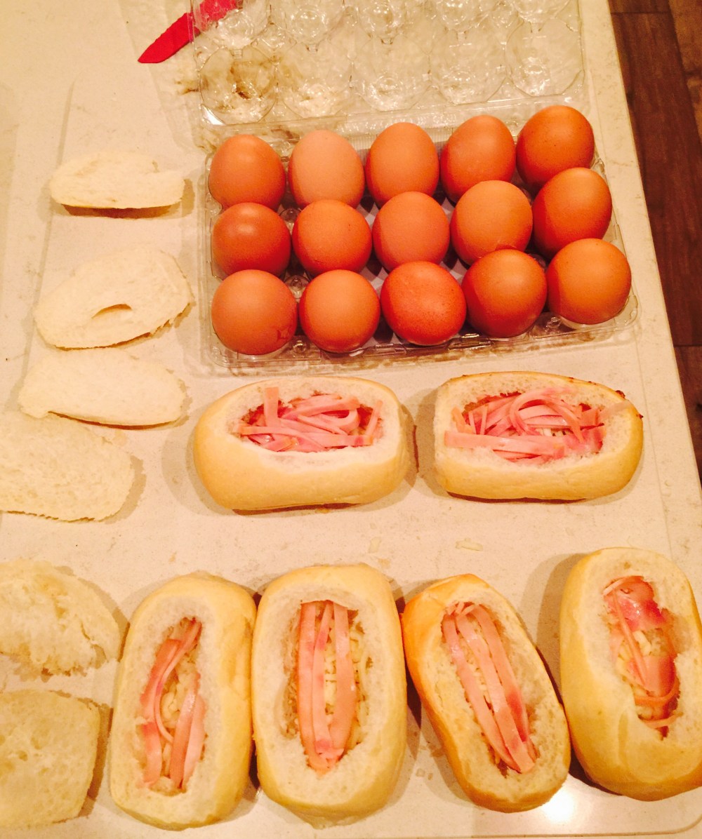 Un tip es que si te gusta la yema bien cocida es que pases los panes al micro por unos 3 minutos y luego nuevamente al horno para que sigan tostando.