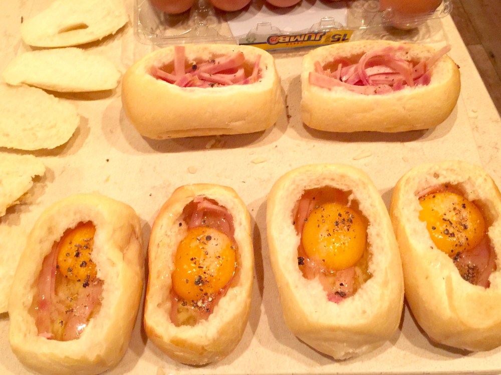 Viene la parte divertida… En cada pancito rellenaremos con un huevo entero, trata de no romper la yema cuando los coloques, y procedemos a poner sal y pimienta al gusto.