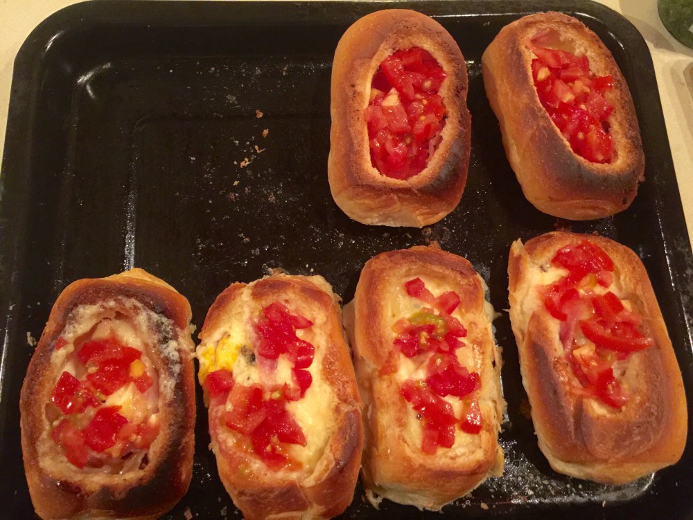 Antes de meterlos al horno y ahunque ya se antojan, les ponemos más queso puede ser el montino o más mozzarella (el que tengas que derrita) y más tiritas de jamón y colocamos al horno por unos 10-12 minutos a 260 en bake… Los últimos 2 minutos pasas a broil.