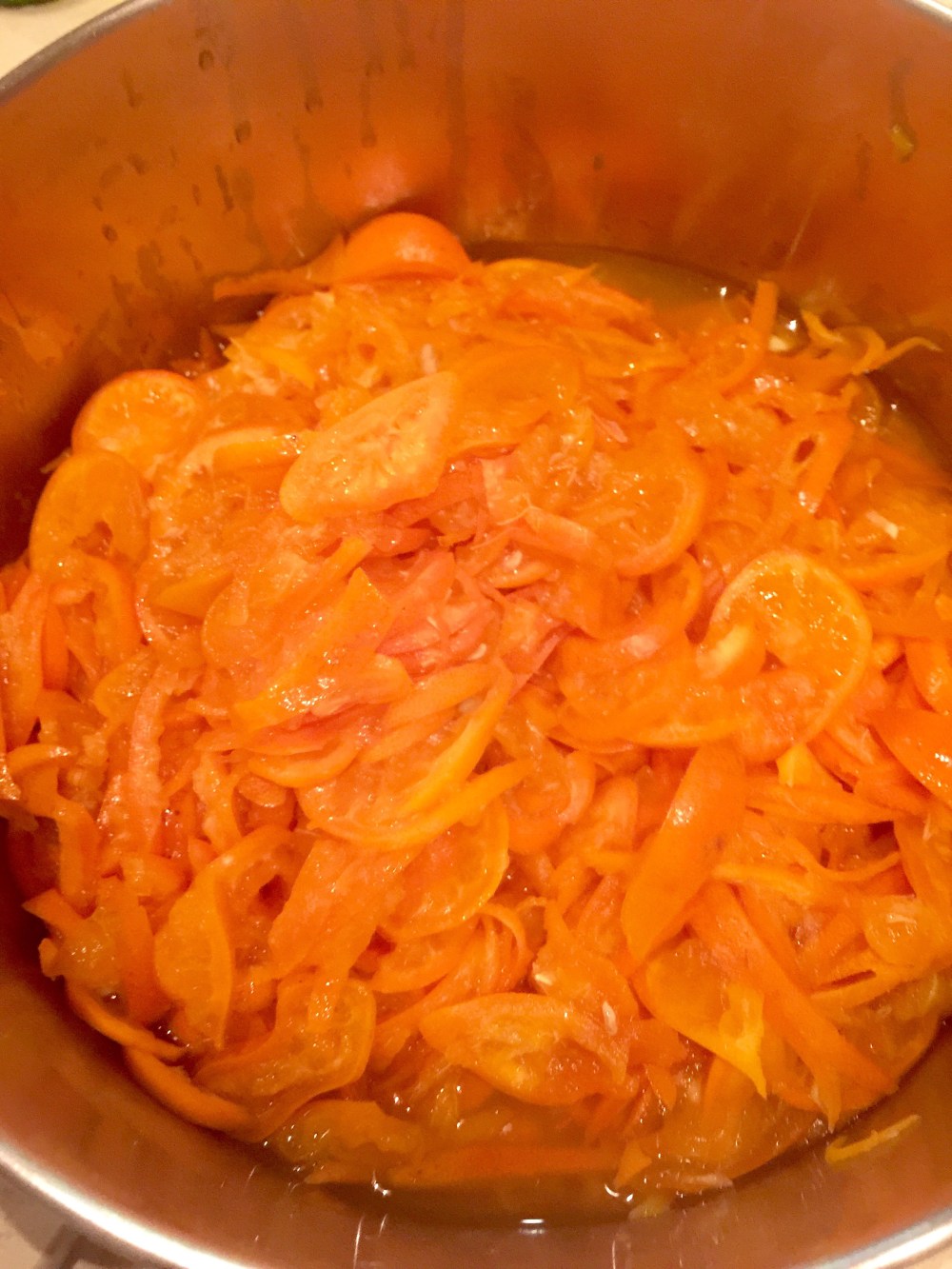 Procedemos a dejarla macerar sin nada de líquido… Solo las calamondin con el azúcar al menos por 1 hora, si puedes más tiempo mejor… Ya veras que suelta sus propios líquidos!