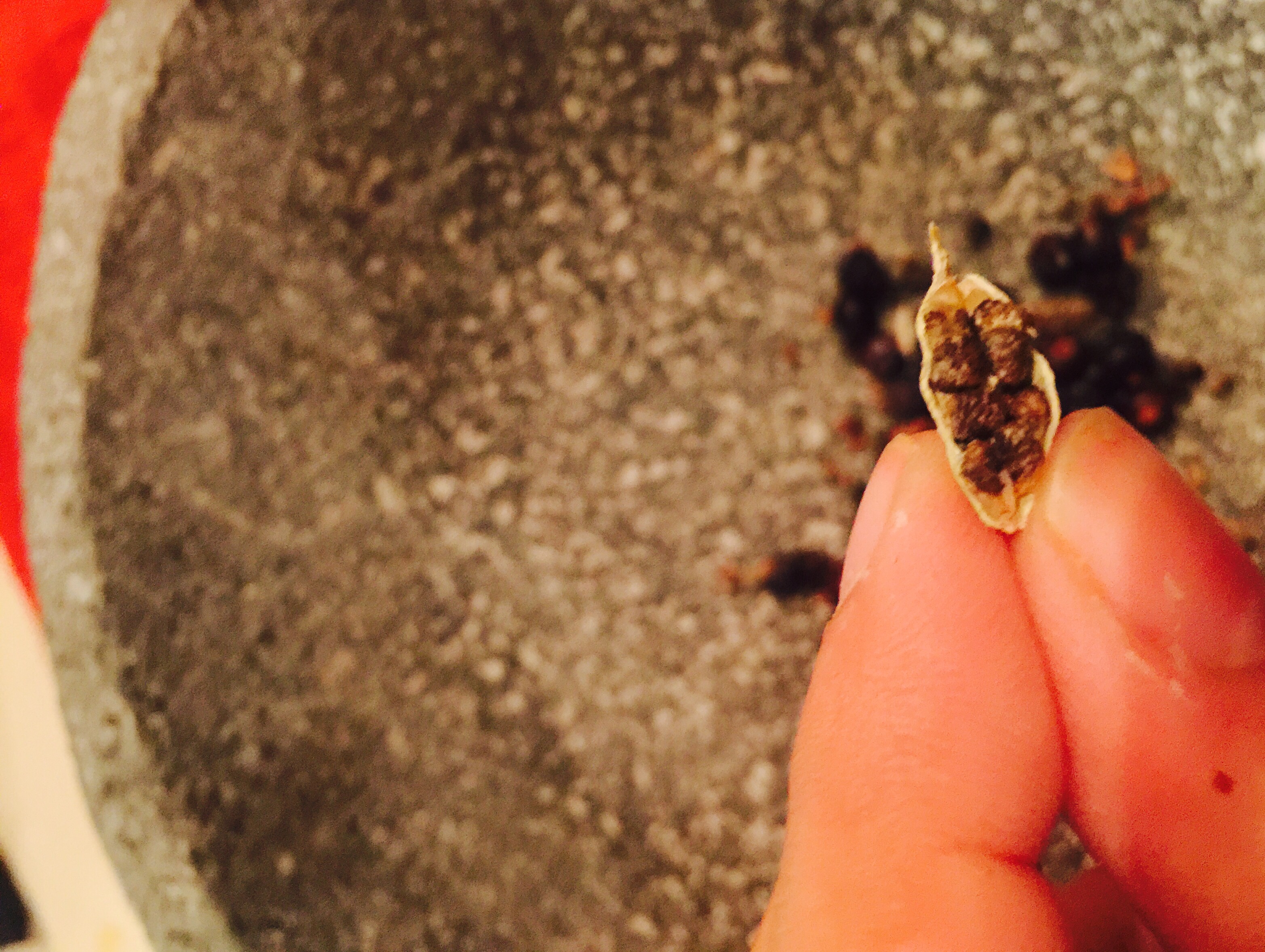 Se tienen que majar bien que no quede como una pasta sino despedazadas para soltar los aceites esenciales y aròmas de estas especias.
