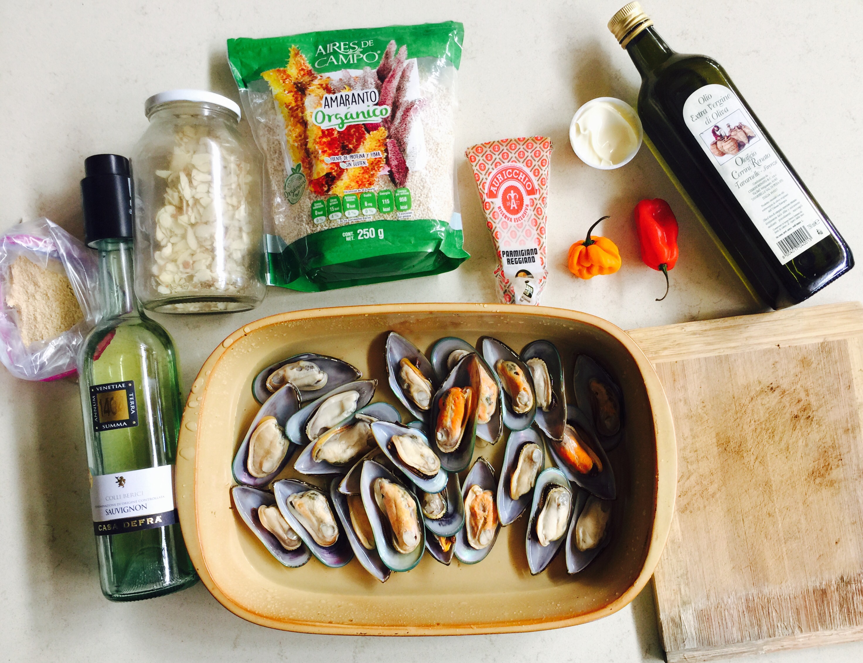 - 1 caja de mejillones congelados (aprox de 22 a 25 mejillones grandes)