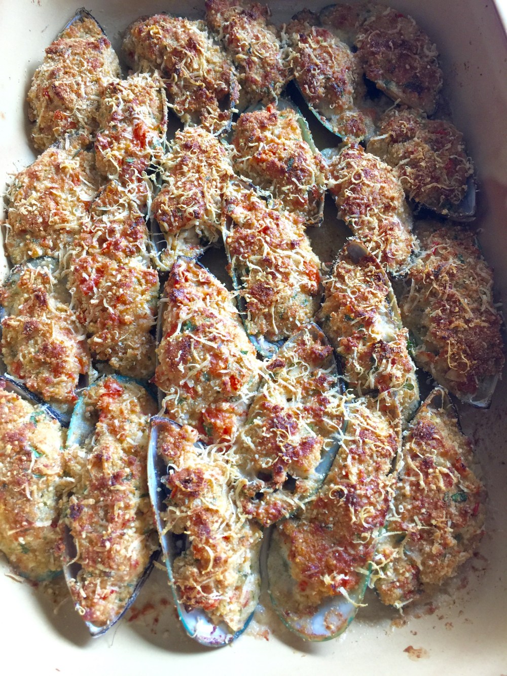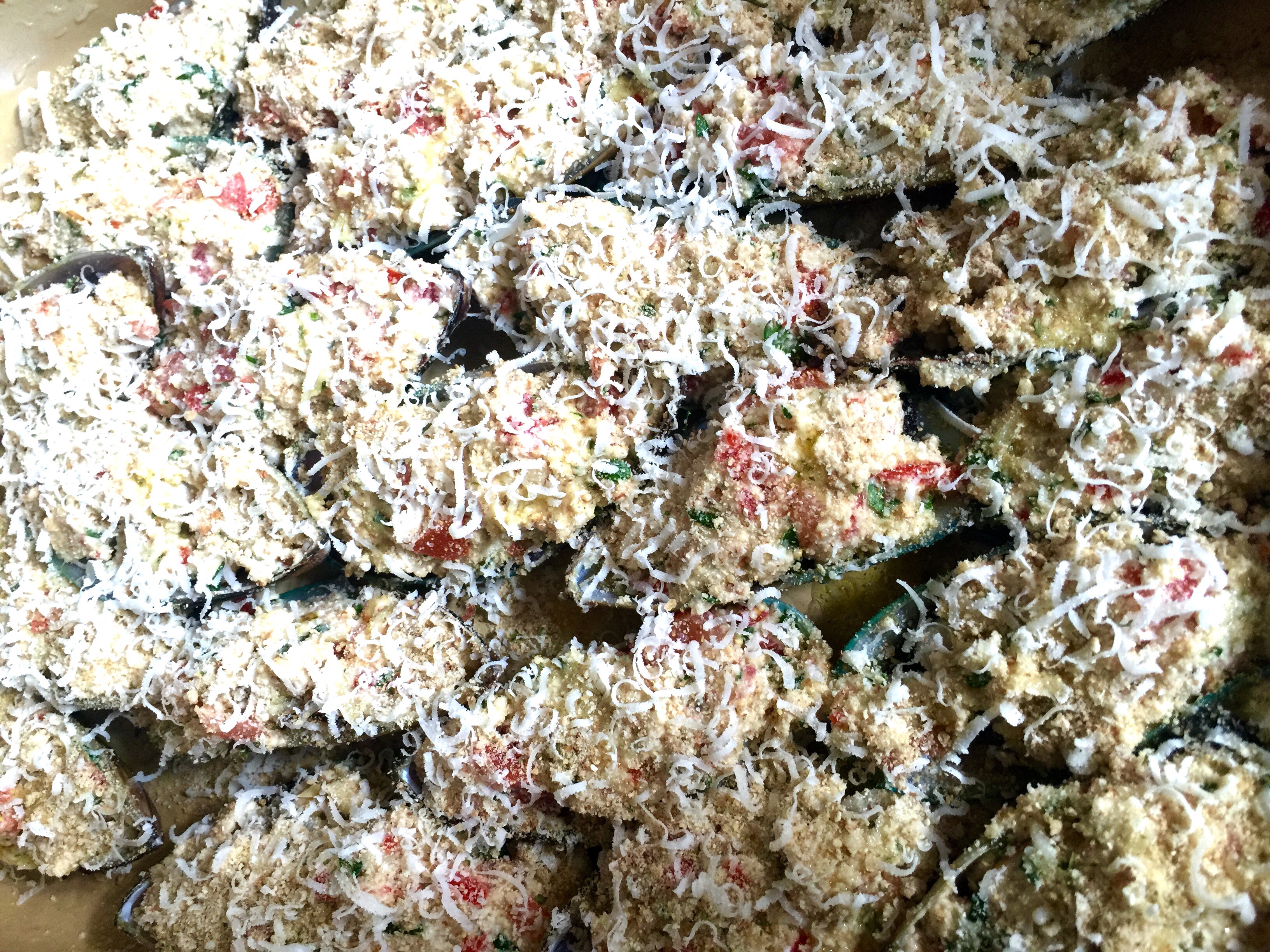 Está listo y amalgamado para Proceder a rellenar los mejillones o bien ponerlo sobre el molusco con el fin de taparlos.