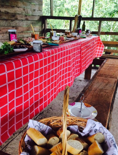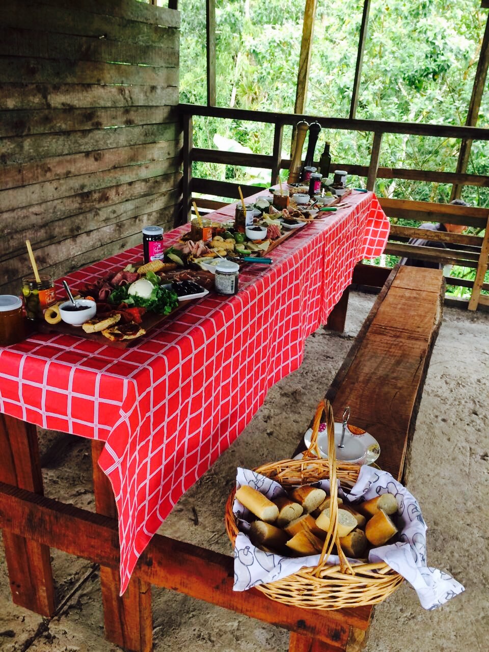 Me empecé a estresar, tanto que Nicola y yo metimos todo nuevamente en el carro, no sé cómo… Vale que gracias a Diso tenemos un jeep y entrò todo en los asientos porque atrás tenía las tablas de comida ya armadas y no podía quitarlas…: que aventura por Dios! Entre la humedad que no nos dejaba parar de sudar, la nervia y preocupación porque todo saliera bien y ya eran las 12 y no había llegado el cliente y donde los hago comer… Le digo a Nicola que nos fuéramos de ahí a la parte de arriba donde había una casita como abandonada y apenas en construcción y que yo montaría ahí todo… En estos casos se tienen que tomar decisiones en el momento y no teníamos señal en el cell para preguntarle al cliente que quería que hacer!
