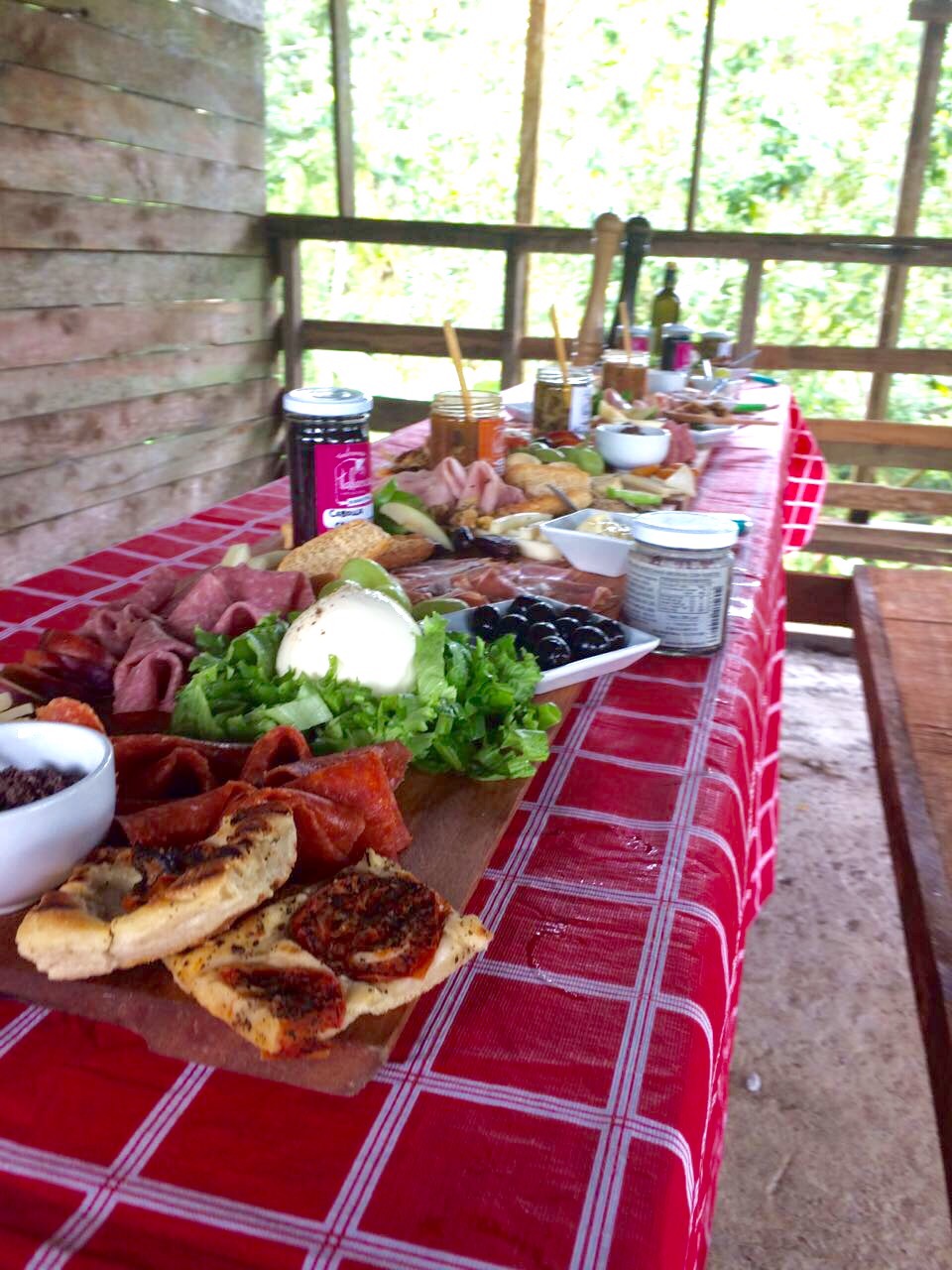 Llamé a uno de mis colaboradores y le pedí que sorry por la hora, le mandé un uber privado (osea Nicola 😂) y nos pusimos a cortar jamones, Salami, prosciutto, quesos y preparar todo lo que tenía que llevarme: cuchillos, tablas, canastas, vegetales, platos, servilletas, manteles, decoracion, postres, etc y así en dos horas teníamos casi todo listo.
