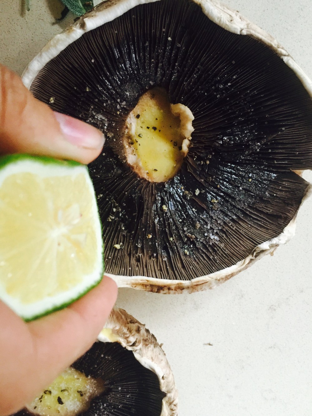 Ya que los hongos tienen mucha agua y no mucho sabor procedemos a salarlos pimentar los y poner un chorrito de aceite de oliva junto a unas gotas de limón.