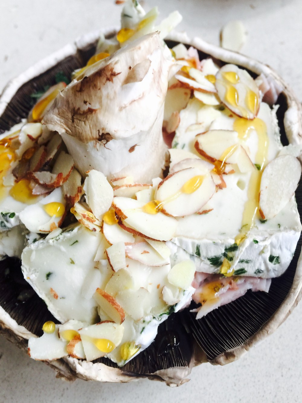 Portobello relleno de brie y un toque de miel