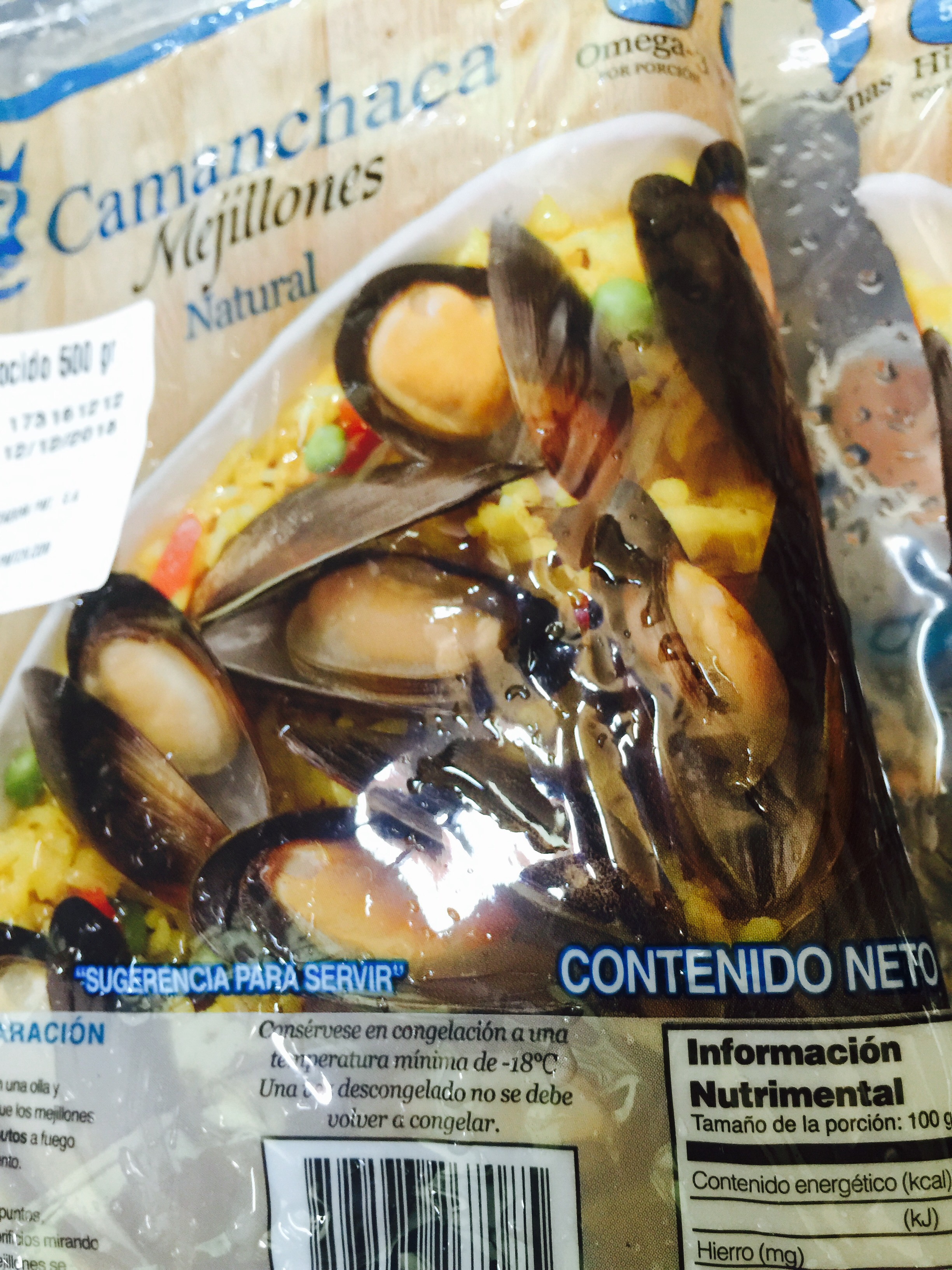 Si utilizaremos mejillones congelados como en mi caso, dejar el paquete a temperatura por unos 20 minutos. Estos fueron los que yo compré: