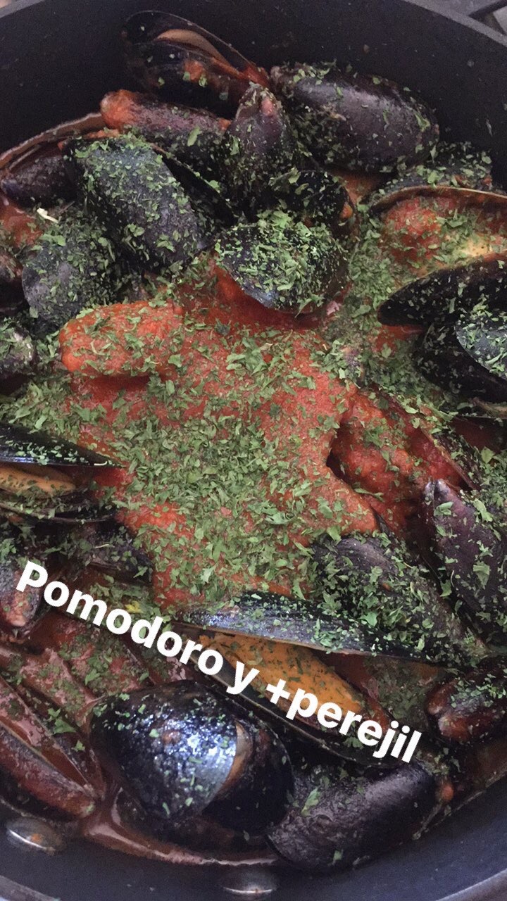 Es así, y como de costumbre que los domingos cuando no salgo a comer afuera, abro el refrigerador veo que ingredientes tengo y mi mente empieza a volar… En este caso tenía mejillones (siempre tengo en el congelador) ya que son súper prácticos, rápidos de hacer y saca apuros… Vino blanco, Chile picante, perejil, ajo y tomate!!!! Listo a trabajar 😉