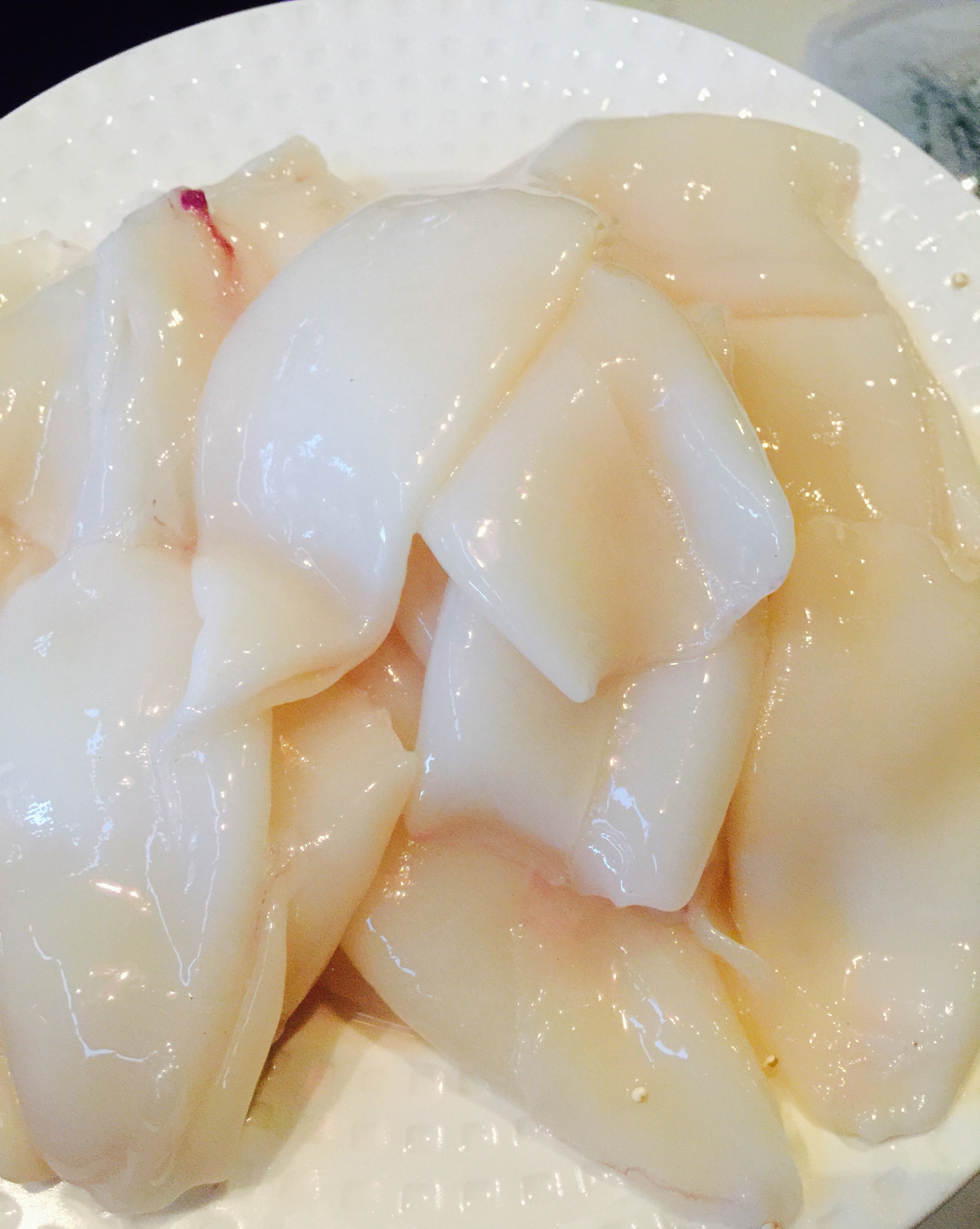 Deje unos calamares enteros y otros los corte a la mitad para presentación!