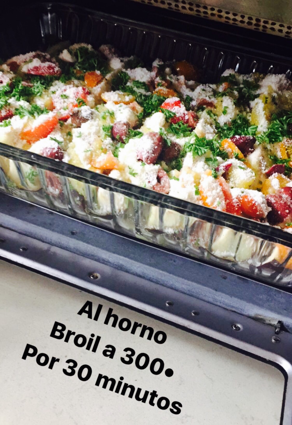 Está listo nuestro plato… solo nos falta pasarlo al horno PRE caliente a 300 grados centígrados, en broil por 30 minutos.