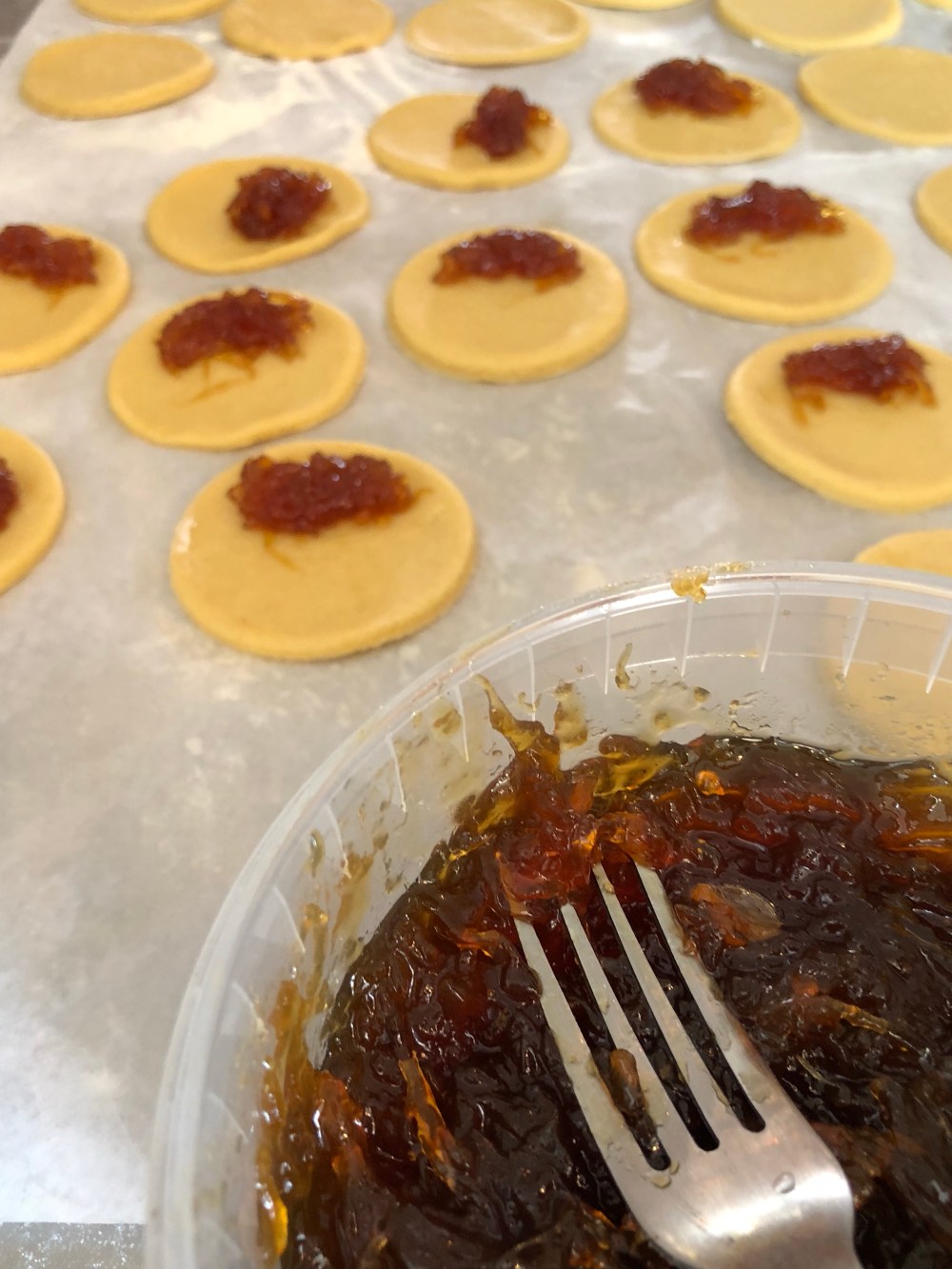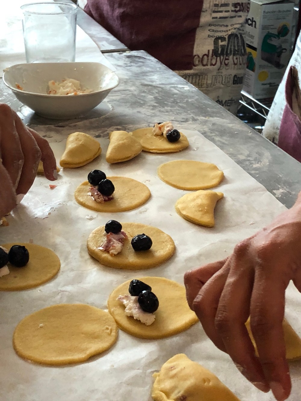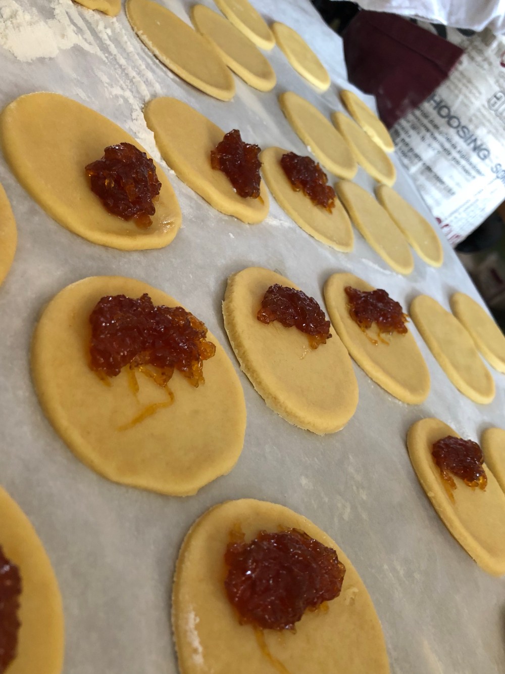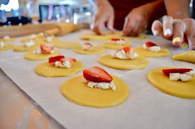 Preocúpense porque queden muy bien cerradas y las van colocando en un molde para horno forrado de papel encerado especial (como tienen bastante mantequilla no se les pegan).