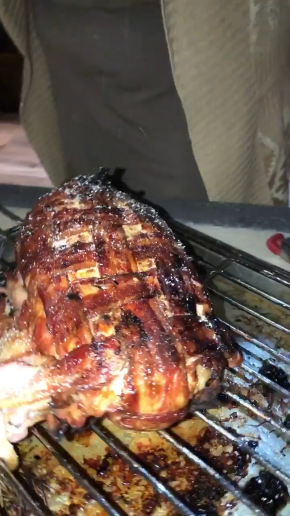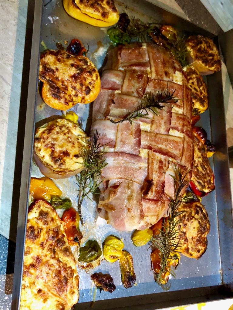 En mi caso había encendido el horno de leña para hacer pizza, y decidí meterlo ahí con el riesgo que se me secara un poco pero en cambio fue todo un éxito el sabor que le dio la leña y lo jugoso 😉
